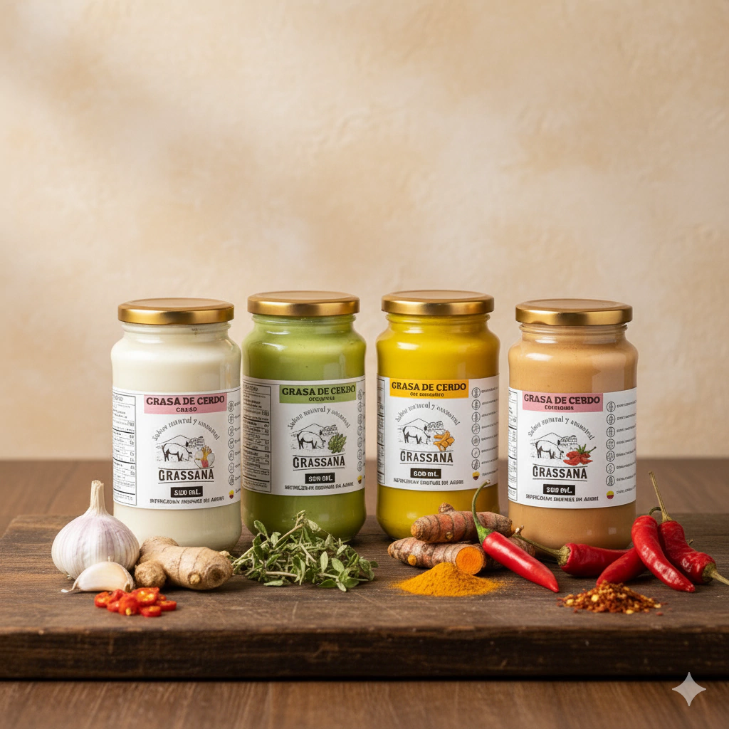 Descubre el sabor auténtico que puede aportar a tus platillos nuestra Grasa de Cerdo Infusionada. Disponemos de tres exquisitos saboresajocúrcuma y orégano, ideales para realzar el gusto de tus comidas.